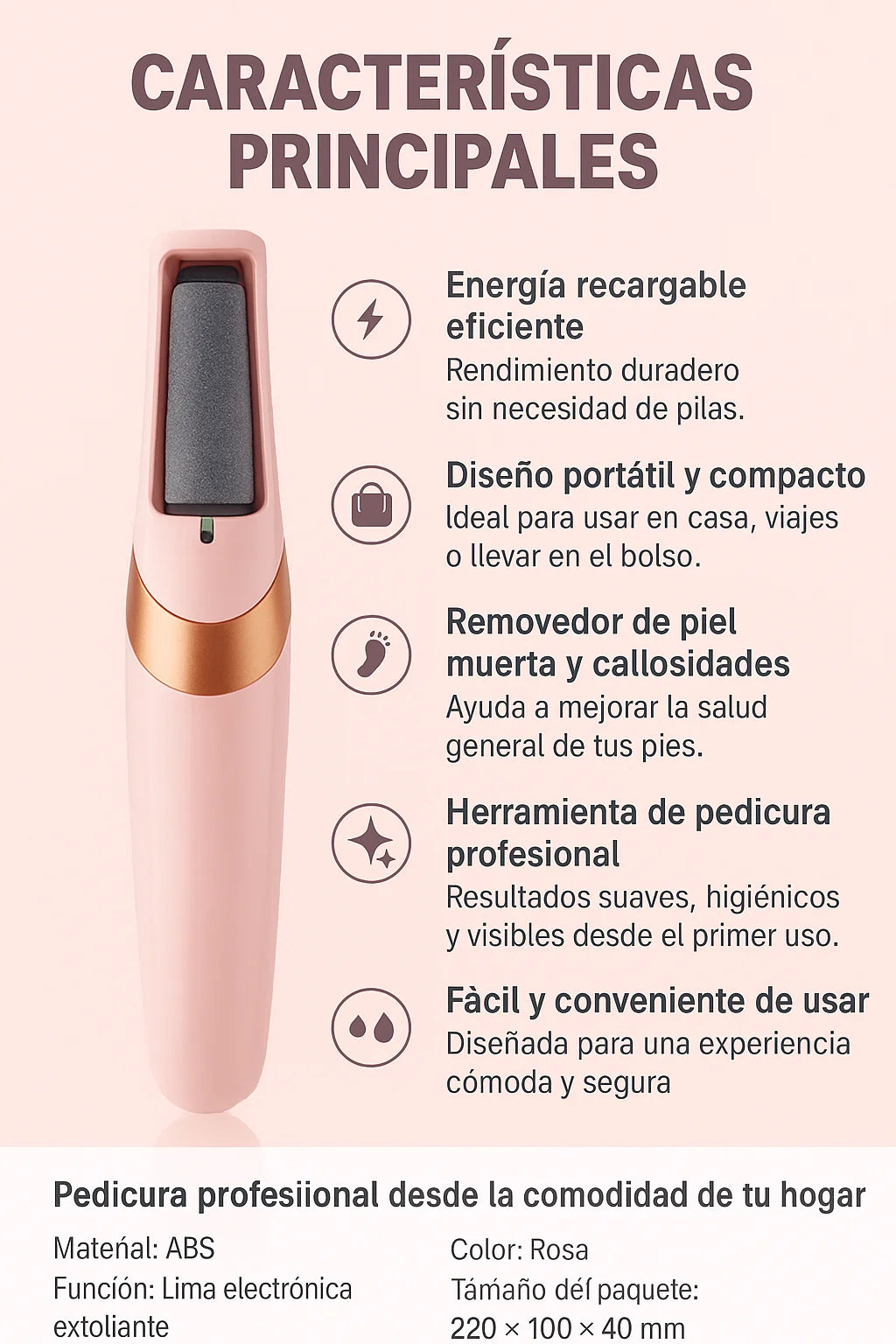 Con nuestro removedor de callos eléctrico , la suavidad vuelve a estar al alcance de tus manos. Rápido y seguro: tu aliado perfecto para lucir pies impecables sin complicaciones.